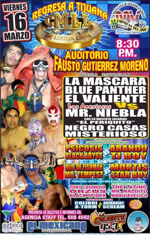 La Mascara, Blue Panther, & El Valiente vs. Mr. Niebla, Necgo Casas, Misterioso