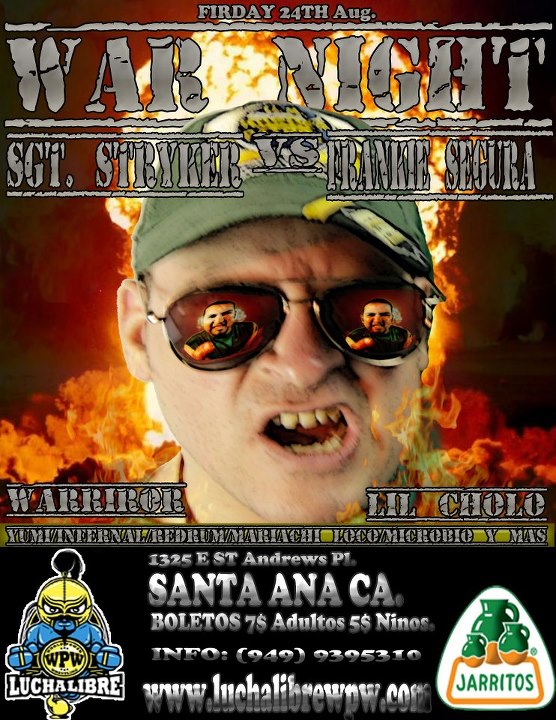 W.P.W. returns with more lucha libre action! This time around, one night only, Lil Cholo teams with Frankie Segura Jr. of La Migra against Warrior Salvaje and Sgt. Stryker of La Migra! Is this battle the end of La Migra? And what of the masked men stalking Infernal and Little Cholo? Plus there’s Jarritos Rookie cup action, and of course the stars of W.P.W. will be in attendance! So come out for this special Friday night show at 8:30 P.M. and enjoy authentic lucha libre from the premier lucha libre promotion, World Power Wrestling! State of the art lucha libre at it’s finest!