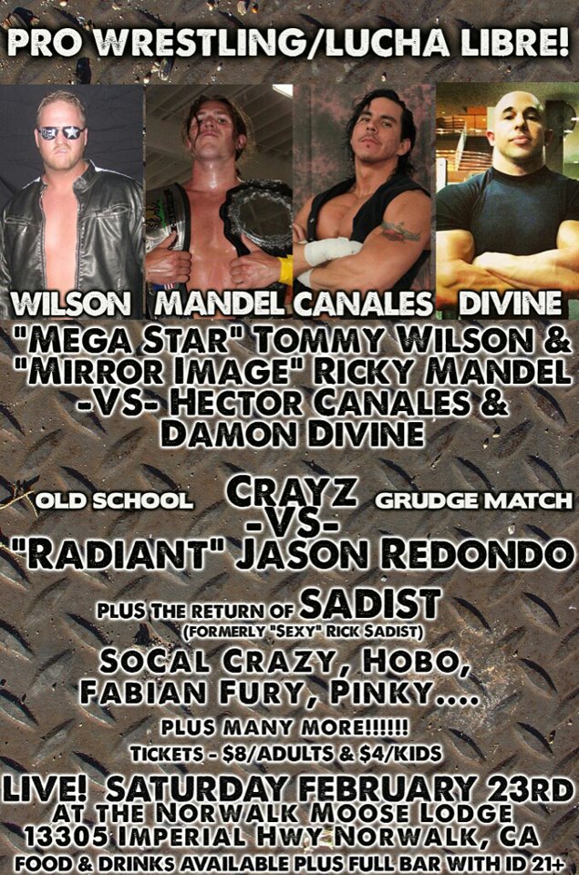 “El Chido” Hector Canales & Damon Devine defeated “Mr. Mega Star” Tommy Wilson & “The Mirror Image” Ricky Mandel with a doubel schoolboy pin.