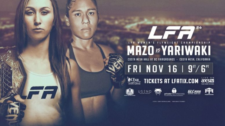 Sabina Mazo defeated Carol Yariwaki to retain the LFA Women’s Flyweight Championship in the main event of LFA 54: Mazo vs. Yariwaki. Also on the show, Moses Murrietta defeated Sidiah Parker and Kailan Hill defeated Andre Walker. Click for results.