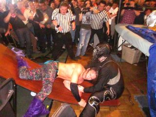 1 – T.J. Perkins v. “The Pretty Boy Pitbull” Kenny King never really got off the ground because Ryan Taylor & Brian Cage-Taylor of The Fightin’ Taylor Boys interrupted the match in the wake of Los Luchas not making it to the show because of a family emergency, then went on to put a beat down on T.J. & Kenny.