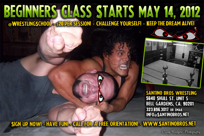 05.08.2012 Bell Gardens, CA. The time to hesitate is through! Less than a week away until the FINAL BEGINNERS COURSE of 2012! You still have time to join Santino Bros-Wrestling School. Class starts next Monday May 14, 2012 at 5pm. We just Signed up 4 NEW students yesterday, spots filling up fast! Get in on it and don’t miss out!