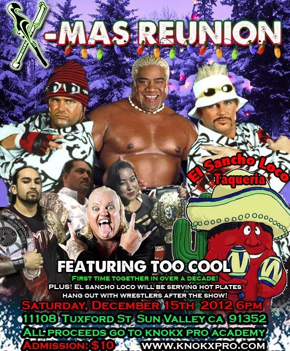 On December 15th, 2012 in Sun Valley, CA, all three members of this group that entertained millions of fans everywhere will reunite for the first time in a decade. This reunion will take place inside a KnokX Pro ring, at “X-Mas Reunion”! Rikishi, Scotty 2 Hotty, and Grandmaster Sexay will be back inside a ring together, this time to entertain KnokX Pro fans inside The Domain!